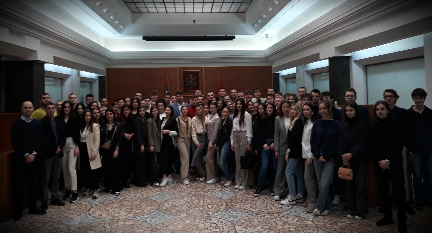 Група студената Правног факултета Универзитета у Београду посетилa је данас, 17. маја 2024. године, Уставни суд. Са надлежностима Уставног суда, начином рада и одлучивања, као и са историјатом зграде Суда, која је споменик културе, студенте је упознао секретар Уставног суда Петар Стајковић.